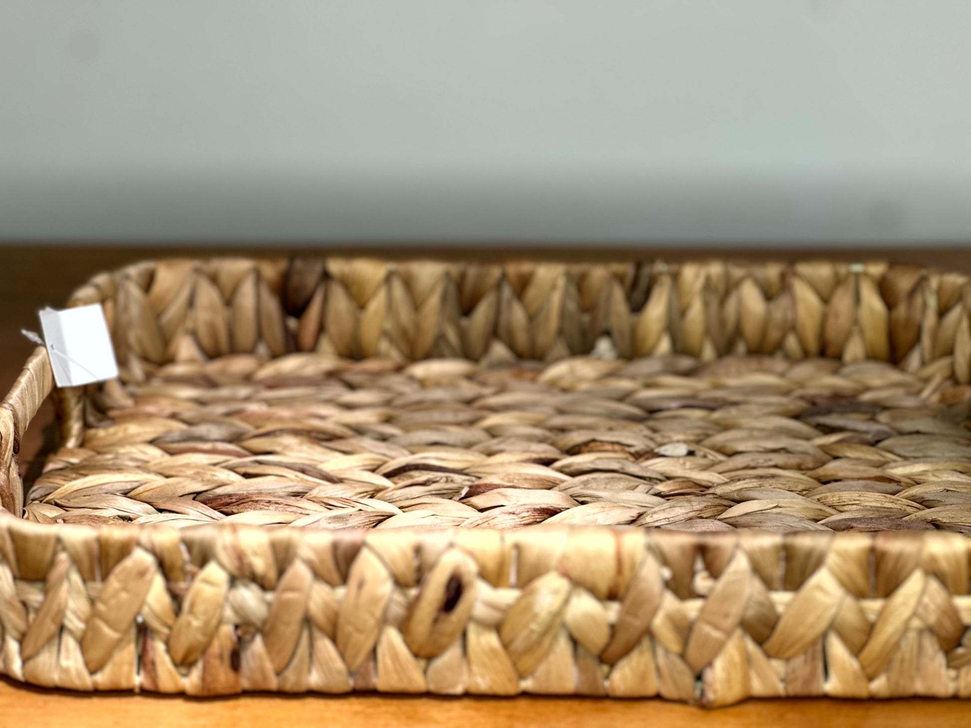 Su trenzado firme y textura artesanal la convierten en una bandeja funcional y decorativa a la vez.