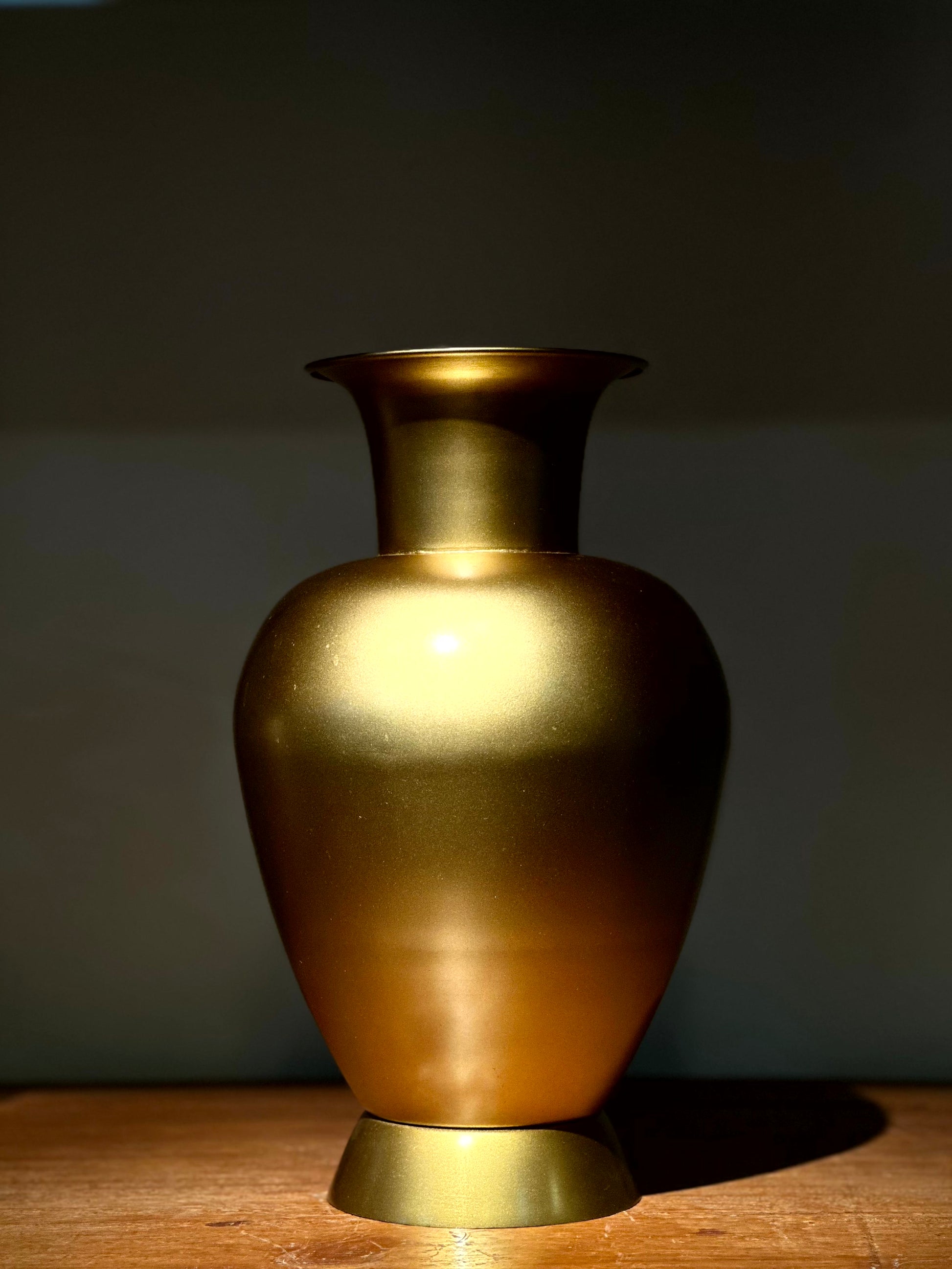 Florero decorativo de metal en acabado dorado satinado.