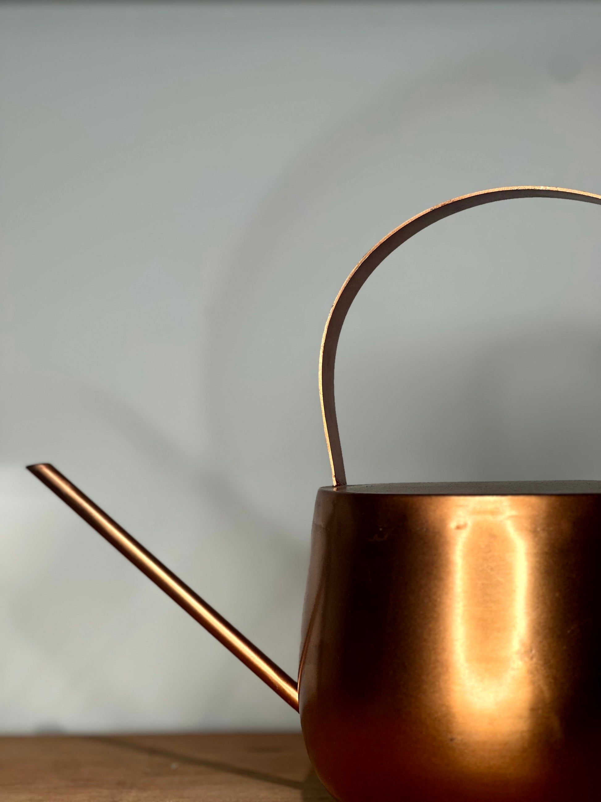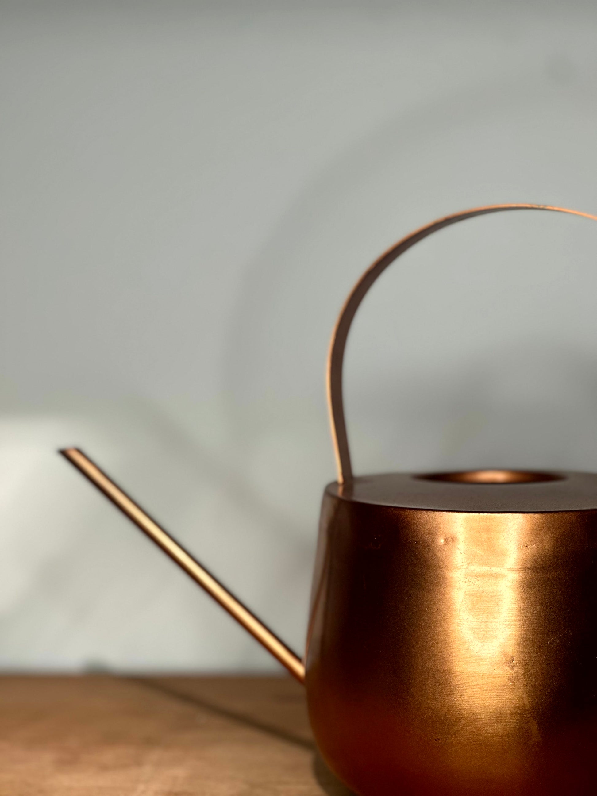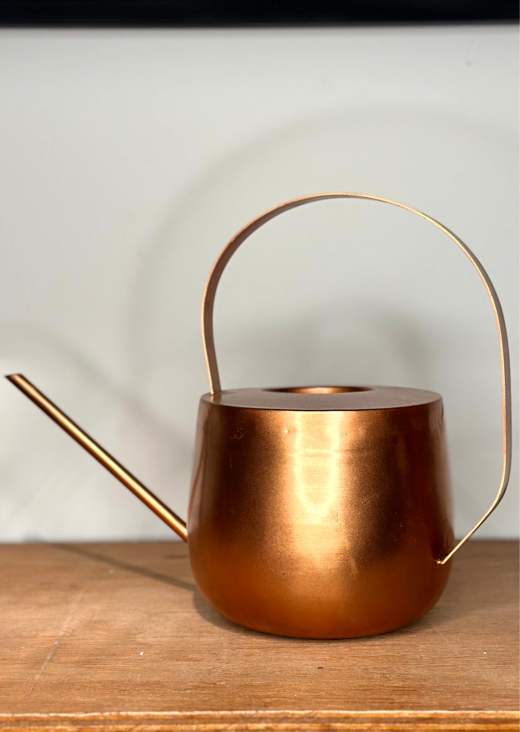 Regadera decorativa en tono cobrizo mate con diseño minimalista. Ideal para regar plantas de interior o utilizar como pieza decorativa en espacios naturales o modernos.
